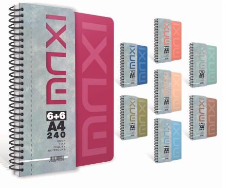 ბლოკნოტი GIPTA 6568 MAXI A4 240ფ. 6+6 ზამბ. პლასტიკური ყდით გამყოფებით