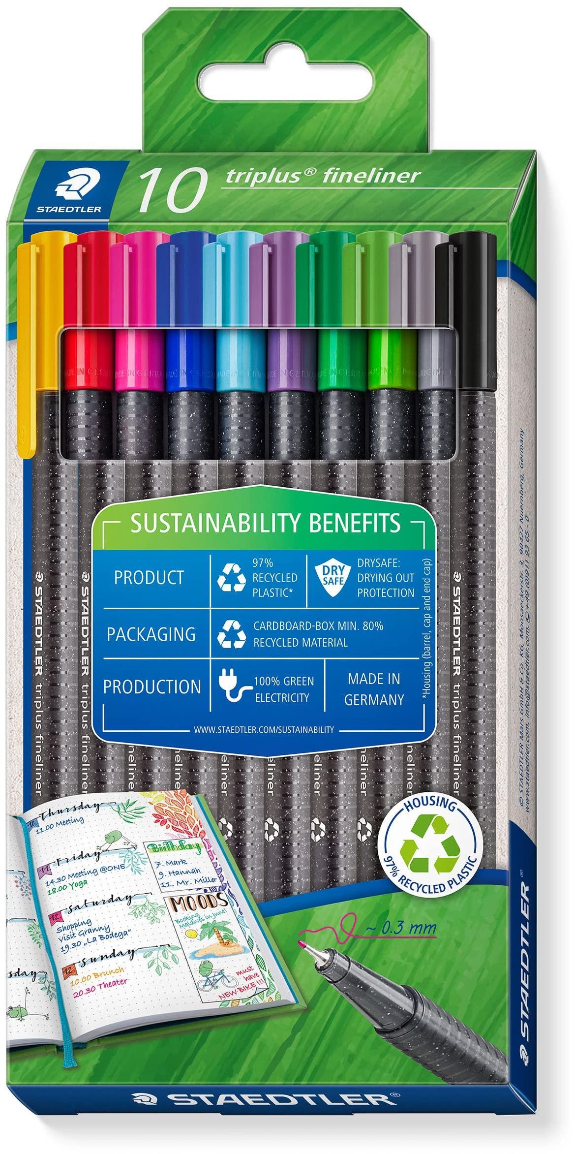 ლაინერი Staedtler სამკუთხა ფერადი 0.3მმ. 10ფ. 334 RC10