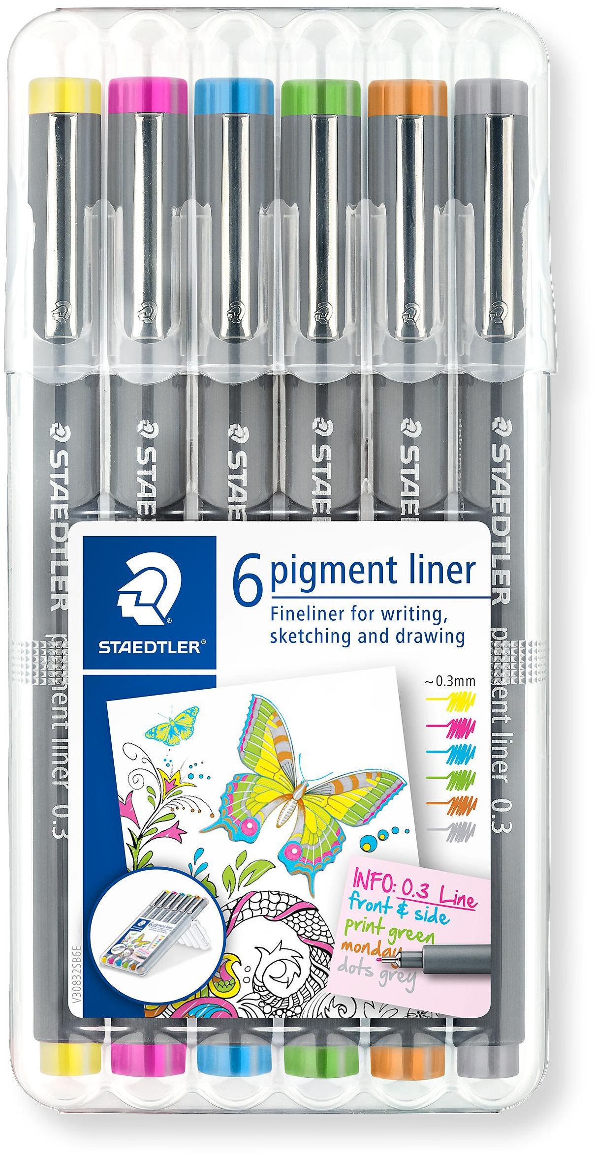 ლაინერი Staedtler pigment liner 0.3მმ. 6 ფერი 30803S2SB6