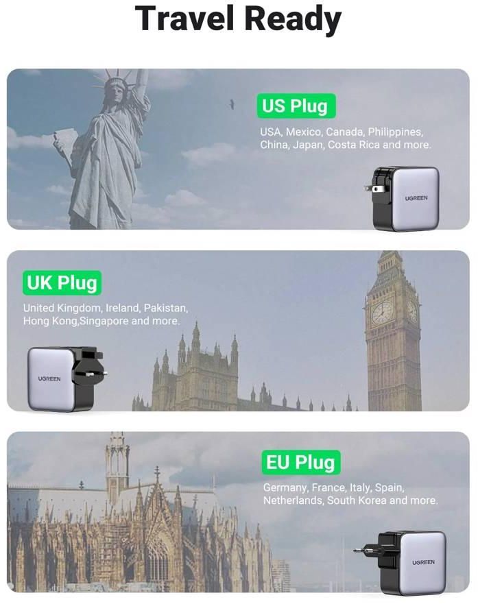 მობილურის დამტენი UGREEN CD296 (90409), Nexode, Travel Adapter, 65W, USB, Type-C, Grey