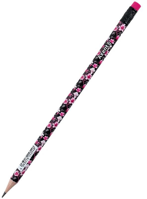 ფანქარი უბრალო AXENT 9009/36-14-A HB Floral Black საშლელით