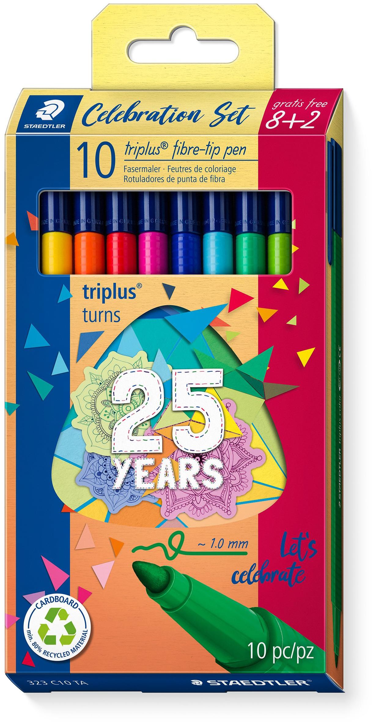 ფლომასტერი Staedtler სამკუთხა ფერადი 10ც. 323 C10