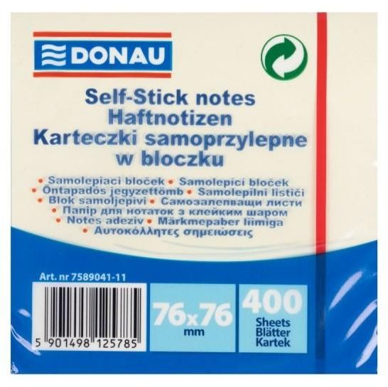 ჩასანიშნი წებოვანი სტიკერი DONAU 76X76მმ 400 ფურცელი პასტელ ყვითელი
