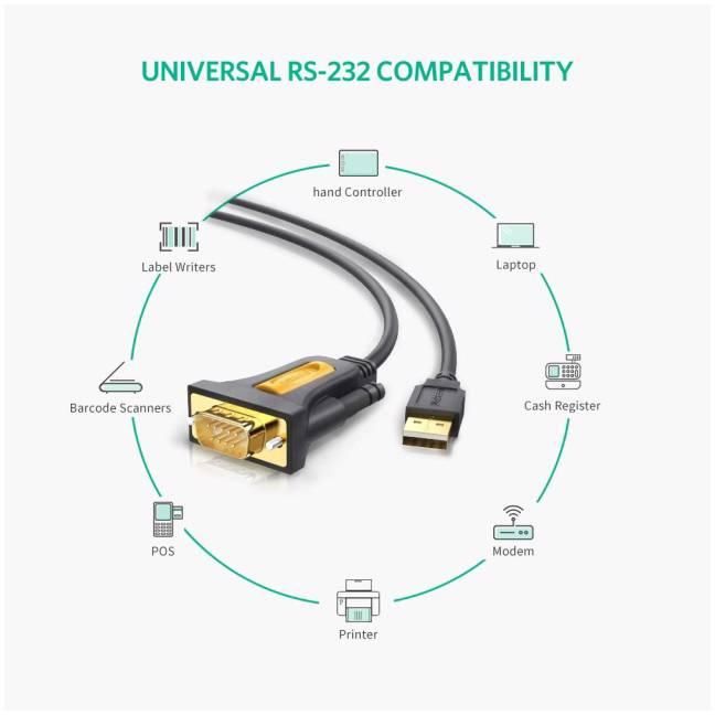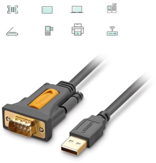 Adapter 2 m, UGREEN CR104 (20222) USB to DB9 RS232 adapter cable, black.