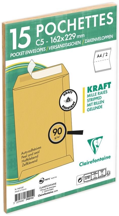 Adheclair p&s C5 kraft env / 15s Clairefontaine 162x229mm 90gsm C5