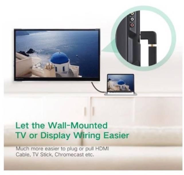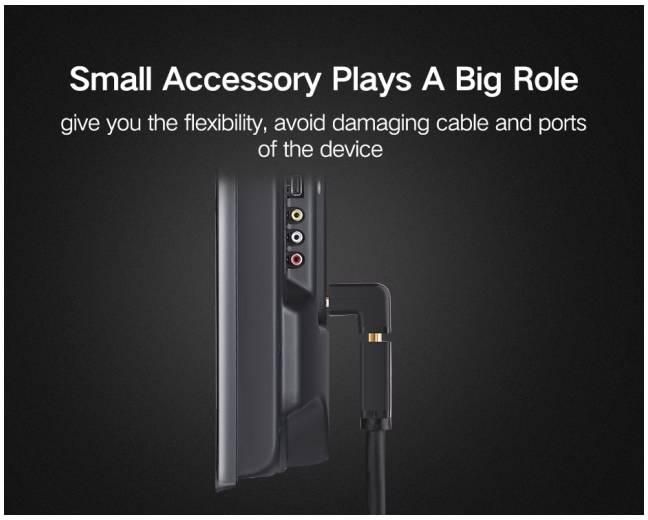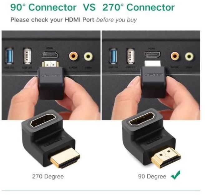 Angled HDMI adapter, UGREEN HD112 (20109), HDMI male-female adapter, black.