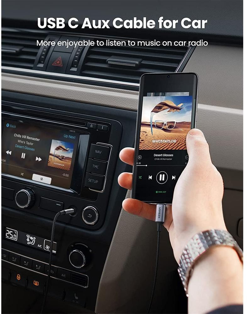 Audio Adapter 1 m, UGREEN CM450 (20192), Type-C Male To 3.5mm Male Audio Cable With Chip, Black/Gray.