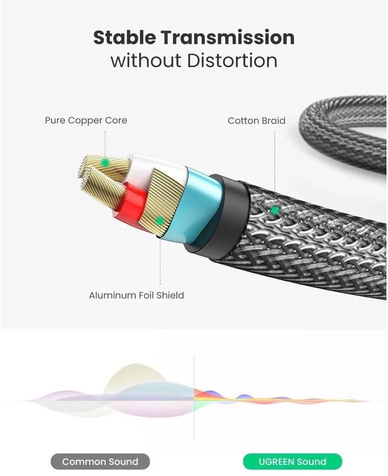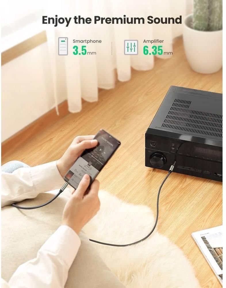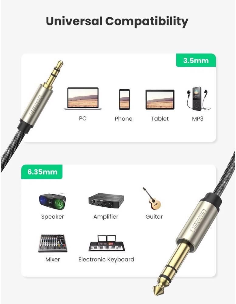 Audio cable 5 m, UGREEN (10630) 3.5mm to 6.35mm TRS stereo audio cable, gray.