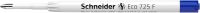 Giant refill in ISO format G2 with *refill body made of 95 % recycled plastic, saving more than 70% CO2 emissions compared to conventional plastic. Waterproof according to ISO 12757-2, fine line width (F). Writing colour blue. Certified with the eco-label "Blue Angel" suitable as refill for the Reco ballpoint pen and all Schneider ballpoint pens with Plug+Play system as well as many other brands. Due to the pleasantly light and constant ink flow, Eco 725 ensures a clean and comfortable writing. The wear-resistant stainless steel tip guarantees that the large ink supply can be fully used and does not smear.