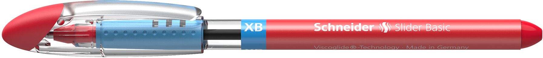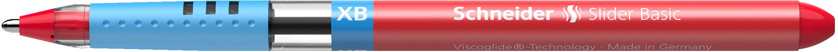 Ballpoint pen with Viscoglide® technology for extraordinarily smooth, gliding writing. Writing colour black. Extra Broad line width (XB). The ink dries quickly - even on smooth paper - and is smudge proof when highlighting it later on. Waterproof according to ink standard ISO 12757-2. Slimline design with an attractively decorated transparent barrel and clip cap that fits neatly on either end of pen. The rubberised grip zone provides a secure hold for relaxed writing. The wear-resistant stainless steel tip guarantees that the large ink supply can be fully used and does not smear. The Slider Basic is produced CO2 neutral.