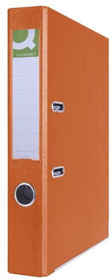 top quality binder, made from cardboard with a thickness of 2.1 mm, 1290gsm;reinforced bottom edges;coated in matt polypropylene film (100 µm), with a texture of canvas;grey paper inner coating, dirt-resistant;replaceable, reversible spine label;top quality leverage mechanism;reinforced finger grip hole,spine width: 55mmsize: 55x320x285mmlife warranty for the mechanismcolour: orange