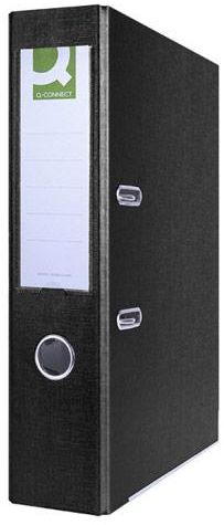 top quality binder, made from cardboard with a thickness of 2.1 mm, 1290gsm;reinforced bottom edges;coated in matt polypropylene film (100 µm), with a texture of canvas;grey paper inner coating, dirt-resistant;replaceable, reversible spine label;top quality leverage mechanism;reinforced finger grip hole,spine width: 75mmsize: 75x320x285mmlife warranty for the mechanismcolour: black