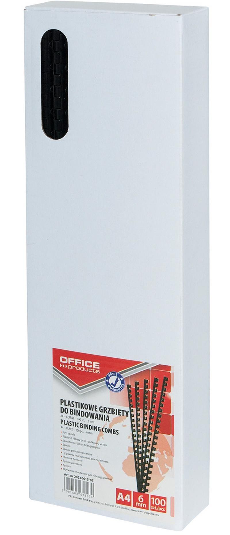 BINDING COMBS OFFICE PRODUCTS, A4, 6MM (25 SHEETS), 100 PCS., BLACK