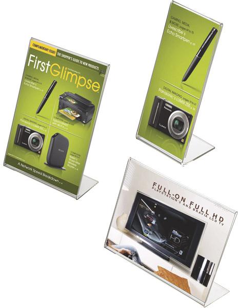 High resistant transparent clear document holders. Angled back to aid reading. Ideal for the display of menus at the restaurant, price lists, etc.