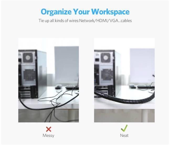 Cable organizer 3 m, UGREEN LP121 (30819), protective tube with a diameter of 25 mm, black