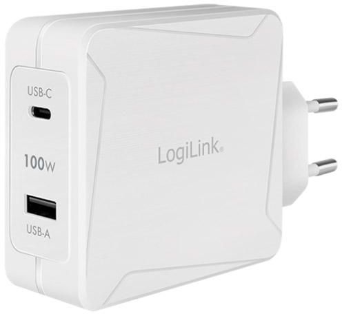 Charger: Logilink PA0281 Dual USB charger set 1x USB-C 1x USB-A 100W white
