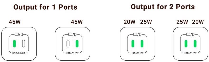 USB C2 + C1 25W / 20W