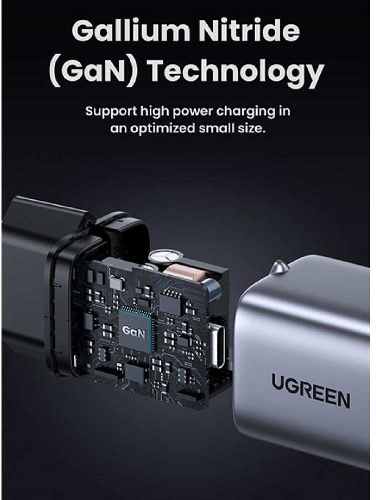 Charger with cable 1 m, UGREEN CD319 (25257) Nexode, 30W, Type-C Type-c, GaN fast charger, gray.