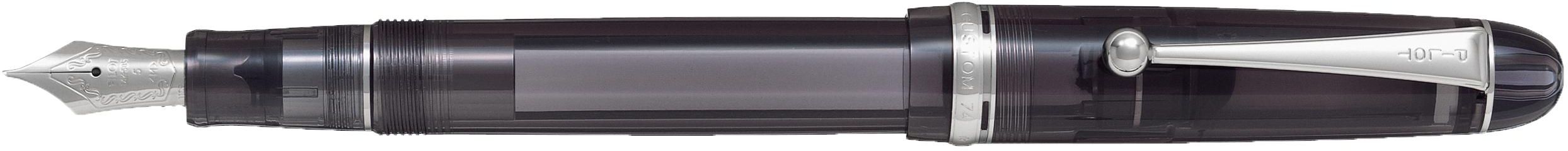 The Custom 74 is an oblong-shaped fountain pen. A transparent tinted barrel gives it the uniqueness that allies itself with a timeless classicism. 14-carat gold nib with rhodium-plated inlay. The Custom 74 can be used with the converter provided or with PILOT ink cartridges. Available in 3 nib sizes: fine, medium and broad.