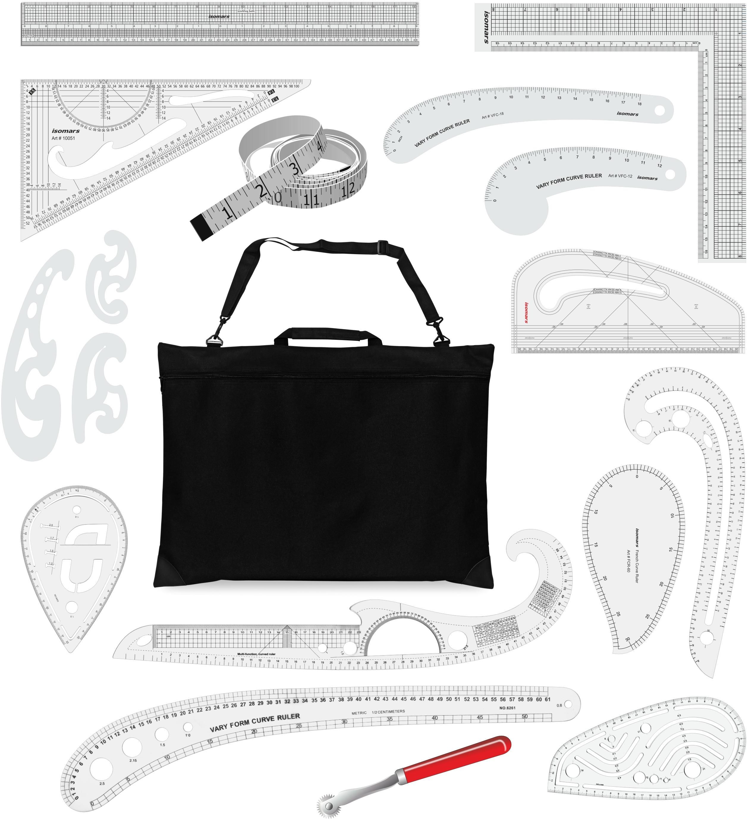 Contains:French Curve Set # FCC03Grid L-Ruler # GLR-818" Gridding Scale # G45Vary Form Curve-24 # VFC-24French Curve Ruler # FCR-60Vary Form Curve-12 # VFC-12Vary Form Curve-18 # VFC-18Art Curve # 10051Pattern Master # PM1Tracing Wheel # TWKit BagGrading RulerMeasuring Tape # MTCurve RulerButton RulerPack of 15 pieces