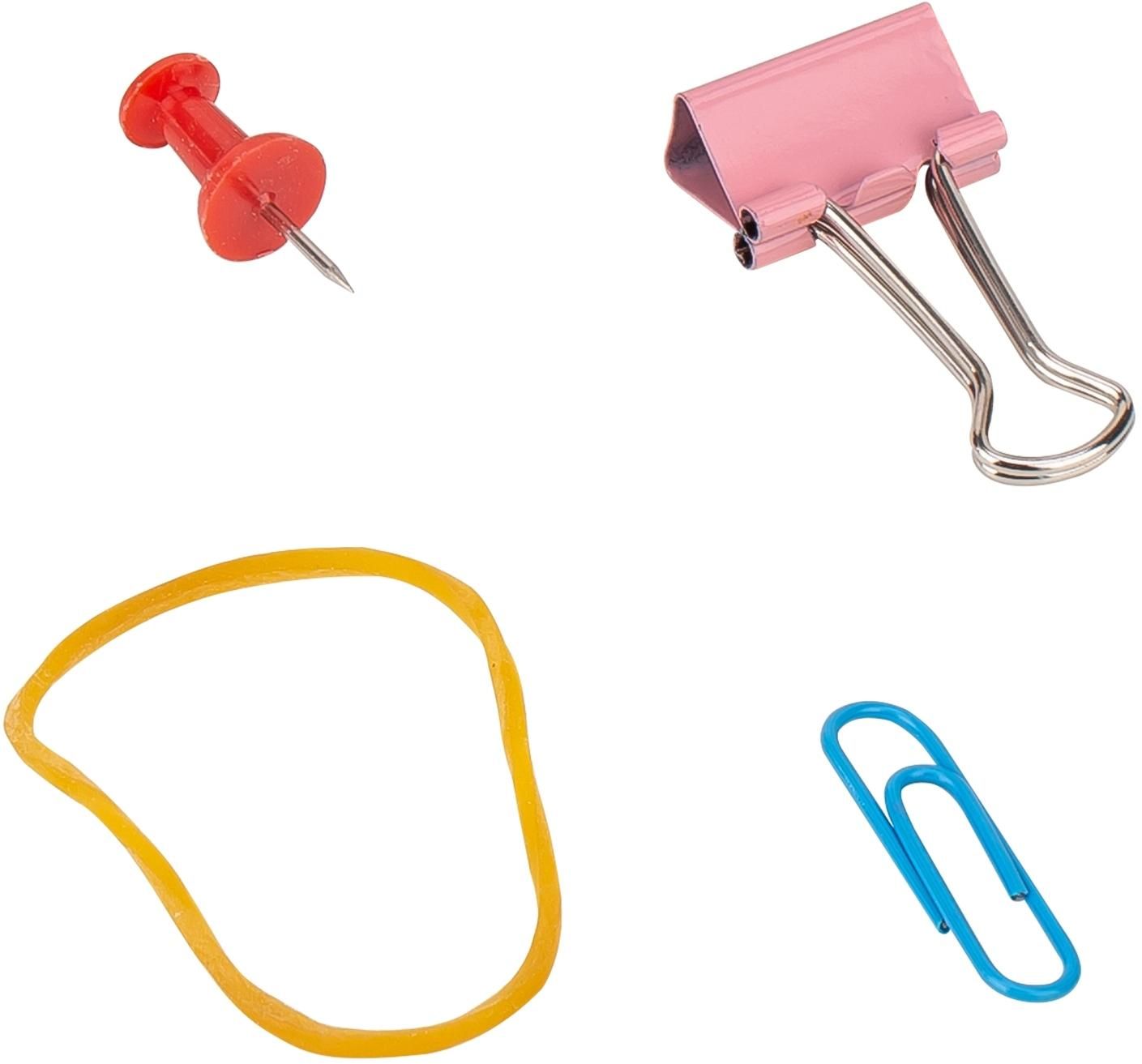 Desk Accessories Set - Paper Clip, Push Pin, Binder Clip, Rubber Band Deli