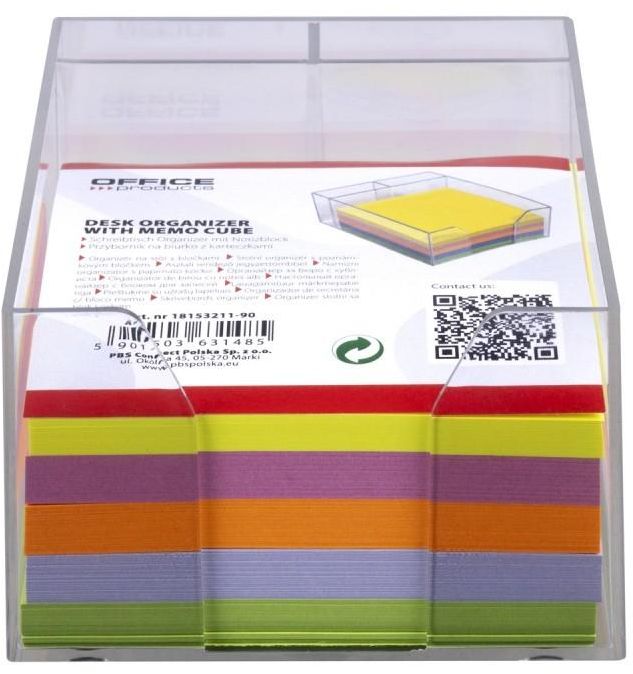 DESK ORGANIZER WITH COLOURED MEMO CUBE, OFFICE PRODUCTS, PLASTIC,TRANSPARENT