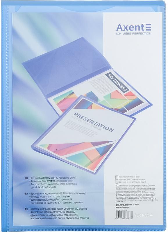 Display-book with files AXENT А4 1020-22-A. 20 files. Plastic. light blue