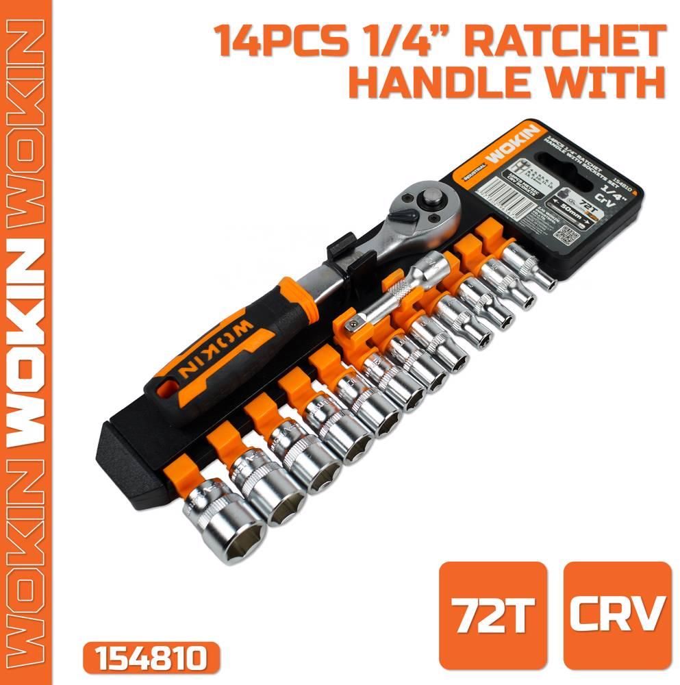Drive Ratchet Handle with Sockets Set (Industrial) 14Pcs 1/4″