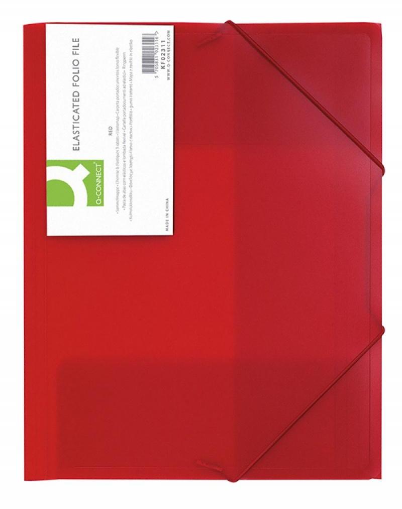 ELASTICATED FILE Q-CONNECT, PP, A4, 400 MICRON, 3 FLAPS, TRANSPARENT RED