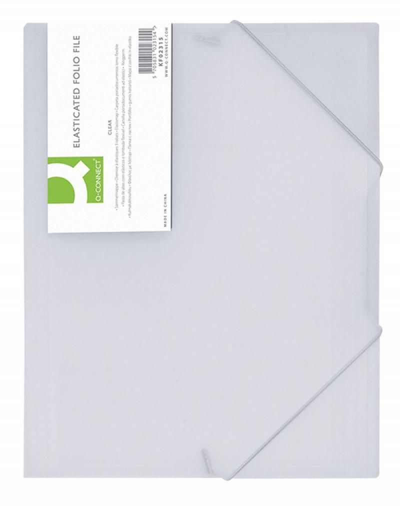 ELASTICATED FILE Q-CONNECT, PP, A4, 400 MICRON, 3 FLAPS, TRANSPARENT WHITE