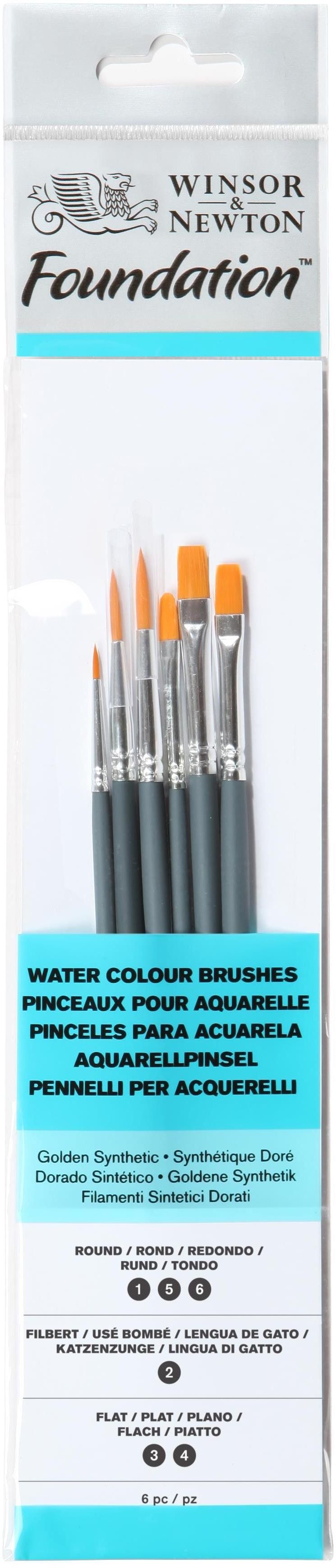 FOUNDATION WATERCOLOUR SYNTHETIC BRUSH 6 PACK Winsor & Newton 6 Pieces