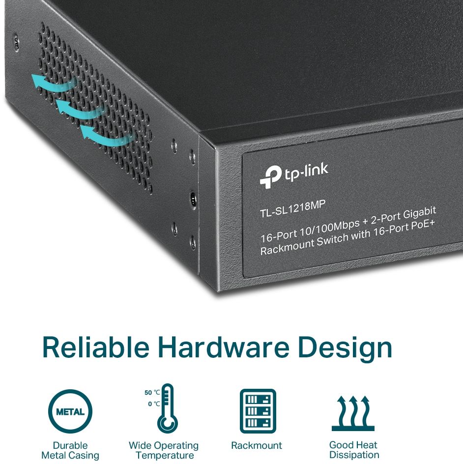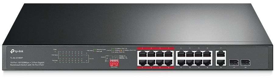 Gigabit Rackmount Switch TP-LINK TL-SL1218MP, 16-Port 10/100Mbps + 2 Port Gigabit RJ45 + 2 combo Gigabit SFP slots - PoE+