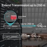 Up to 250 m data and power transmission under extend mode specially designed for surveillance system.**