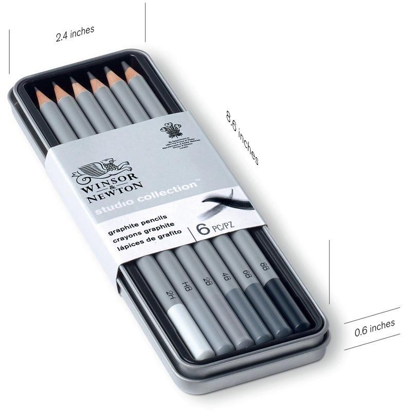 GRAPHITE PENCIL ASSORTED X6 TIN SET 2H • HB • 2B • 4B • 6B • 8B Winsor & Newton