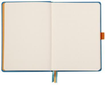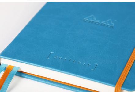 - Italian leatherette hard cover with embossed Rhodia logo- 124 non-micro-perforated sheets- 90 g brushed ivory vellum Clairefontaine paper- 224 numbered sheets- 6 page index- 2 perpetual calendars- 3 ribbon bookmarks- expanding inner pocket- secured by elastic- flat opening at 180°Size: 15.5x21.5cmPaper density: 90gsmPaper size: A5120 sheets