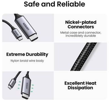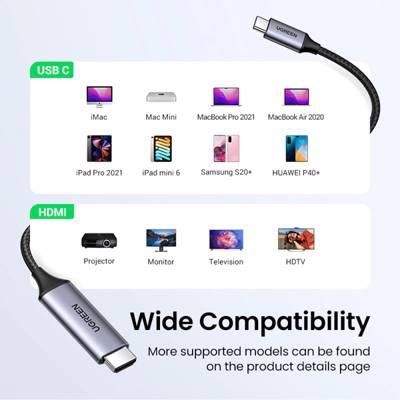 HDMI cable 1.5 m, Ugreen MM142 (50570), USB C HDMI cable Type C to HDMI, black/silver.