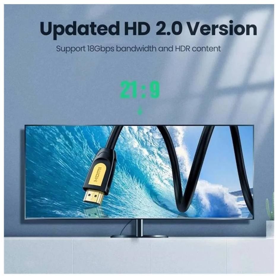 HDMI cable 3 m, UGREEN HD101 (10130), round cable, yellow/black.