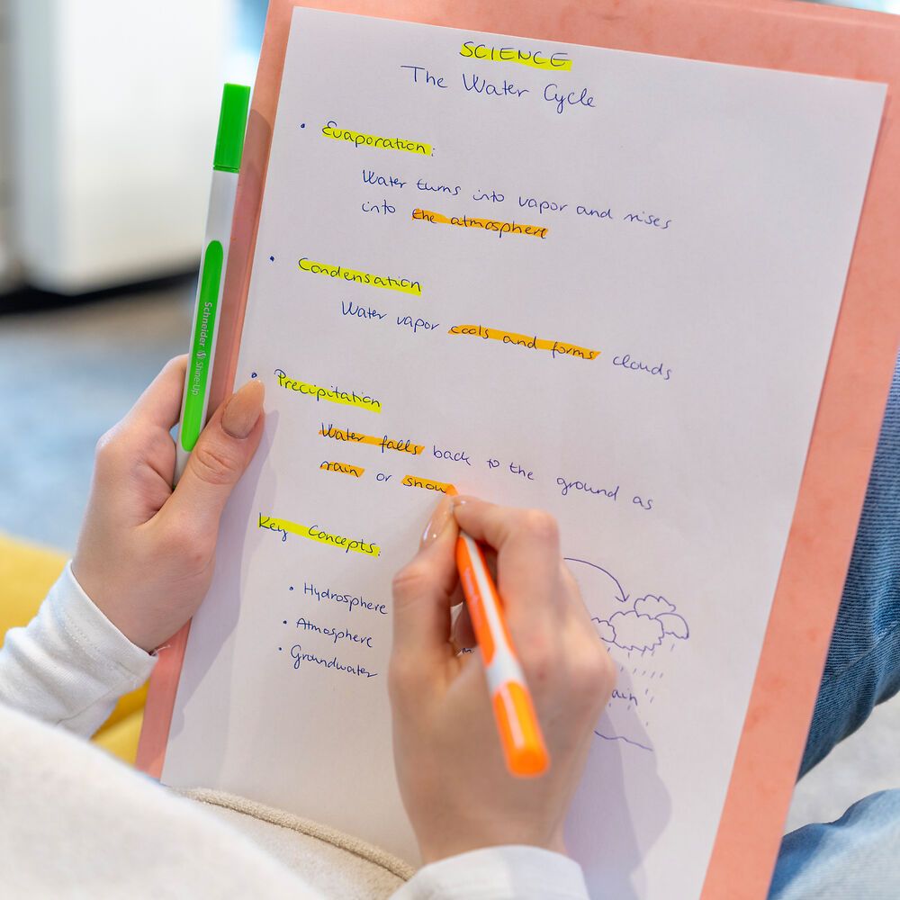 Highlighter Shine-Up in line widths 1 + 4 mm. Colour: green, yellow, orange, pink. This highlighter belongs in every pencil case or pen holder thanks to its slim pen shape. With 4 bright neon colours, it makes marking and studying more fun. Made from over 80% bio-based plastic to protect the environment and to save resources. Awarded the world's most famous eco-label #Blue Angel#. Thanks to the two line widths and the brilliant universal ink for normal, copy and fax paper, the Shine-Up is very versatile. The ergonomic three-edged barrel reduces hand fatigue.