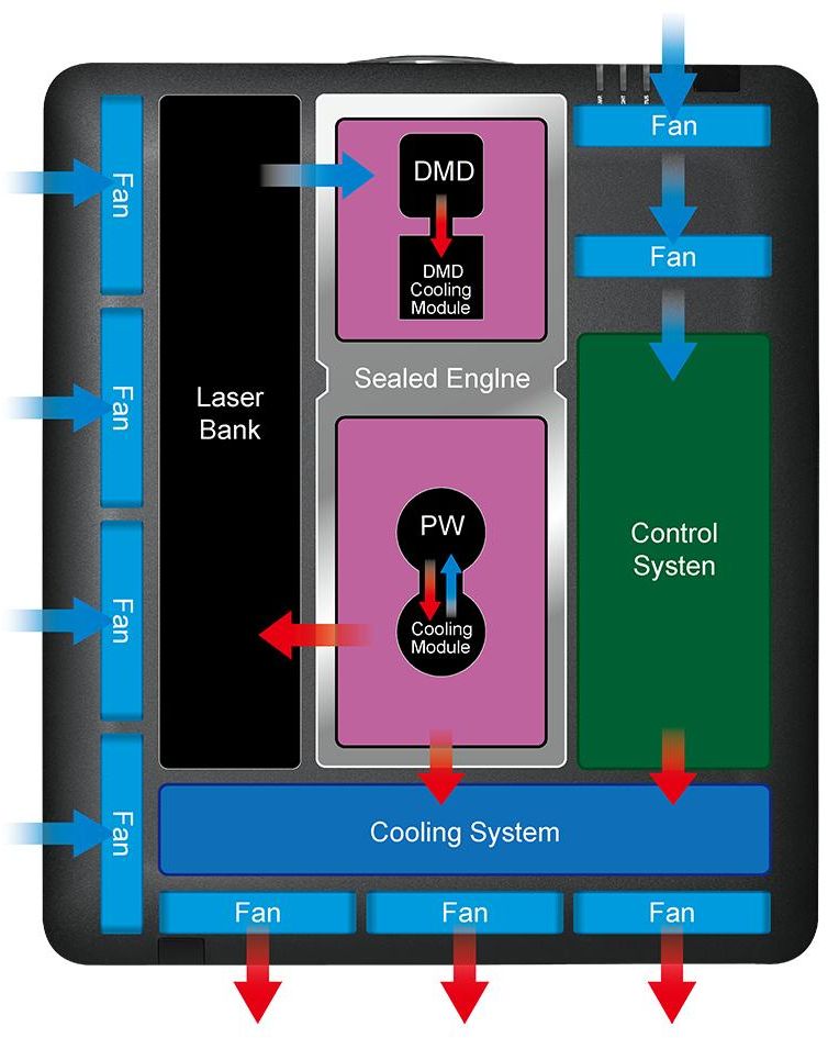 IP6X sealed optical engine design protects against dust ingress