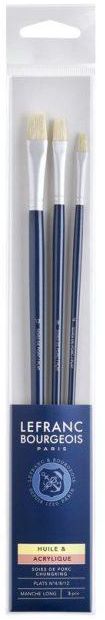 LB FINE BRUSH SYNTHETIC FLAT 4/8/12 LONG HANDLE Lefranc Bourgeois 3 Pieces