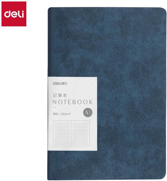 Leather Cover Notebook, lined Deli 210x143mm 80gsm A5 120 Sheets