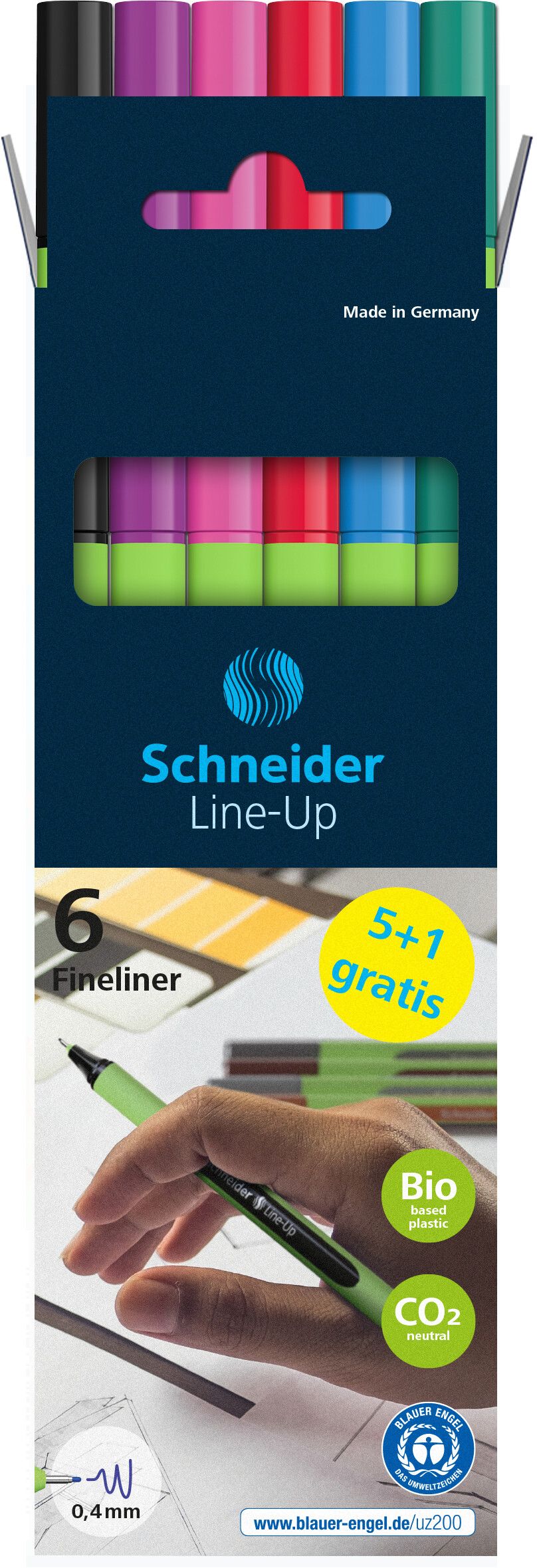 Line-Up is the first fineliner with a barrel of 88% biobased plastic. Awarded with the world's best-known eco-label "Blue Angel" for particularly resource-saving and environmentally friendly production. With its wide range of colours and its slim design it is a perfect companion for putting drawing and writing in the spotlight. Relaxed writing is ensured with the rubberised, ergonomic triangular barrel.