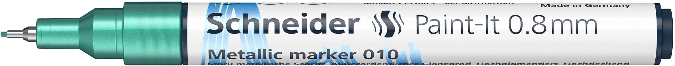 Metallic marker for extraordinary effects. Gives every project a special appearance. Fine line width approx. 0.8 mm. New pigment technology enables a clean and homogeneous colour application. The aluminium flakes coated with colour pigments produce a highly metallic effect with an exceptionally high gloss level, even in different incidences of light. Suitable for many surfaces. Best results on dark and non-absorbent surfaces. Fast-drying ink perfectly controlled by a valve.
