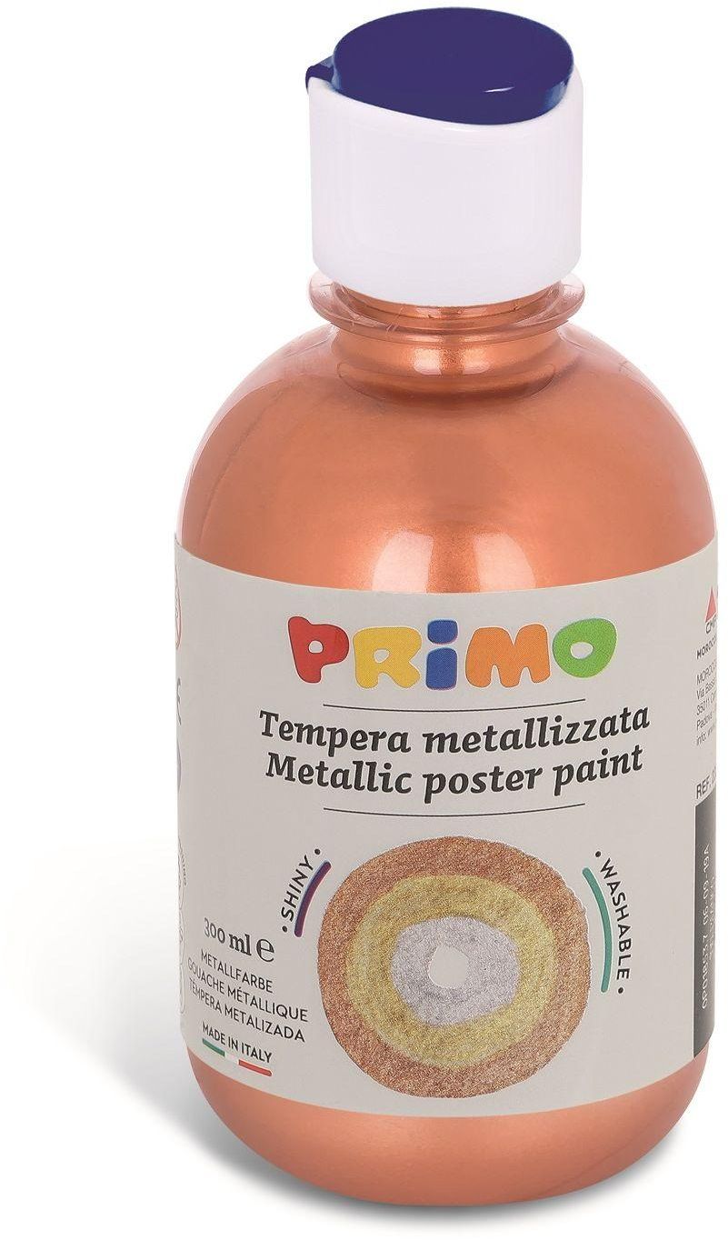 PRIMO Metallic Poster Paint 300ml is a beginner-friendly, ready-mix poster paint, housed in a 300ml bottle with a convenient flow-control cap. Available in a range of captivating metallic colors, this paint is perfect for adding a unique, shimmering effect to any artwork. It allows for opaque coverage, and once dry, the tones remain vivid and bright with a beautiful metallic finish. Colors can be easily mixed together to obtain various iridescent shadings. This versatile paint can be used on different types of surfaces such as paper, cardboard, wood, textiles, glass, terracotta, metal, and plastic. Stains should be removed following the instructions provided. Remember to remove the safety under-cap before use.
