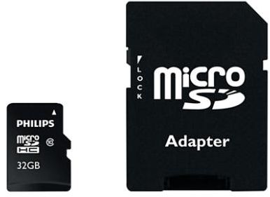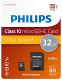 PHILIPS-MicroSD მეხსიერების ბარათი 32GB SD ადაპტერით,Class 10, 80 MB/s