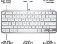 Mini Bluetooth keyboard LOGITECH MX, Illuminated, Pale gray