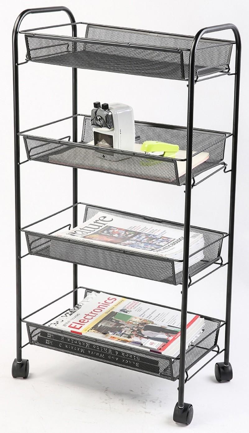 MOBILE DOCUMENT RACK Q-CONNECT OFFICE SET, METAL, WHEELED, 4 TIERS, BLACK