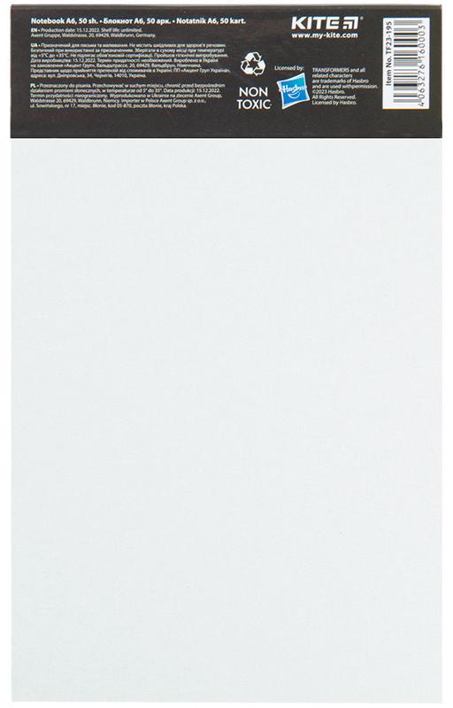 Notepad KITE TF23-195 A6, 50 Sheets Blank, TF