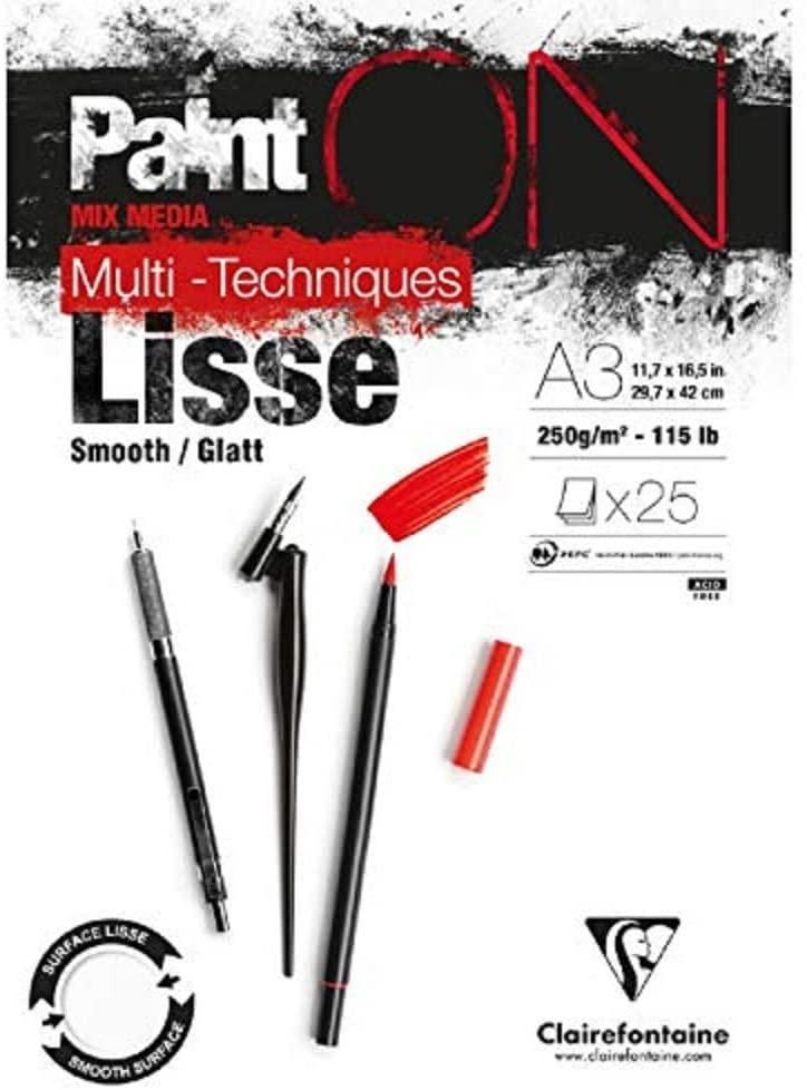 Paint'ON Multi-Technique White Smooth Glued Paper Pad Clairefontaine 250gsm A3 25 Sheets