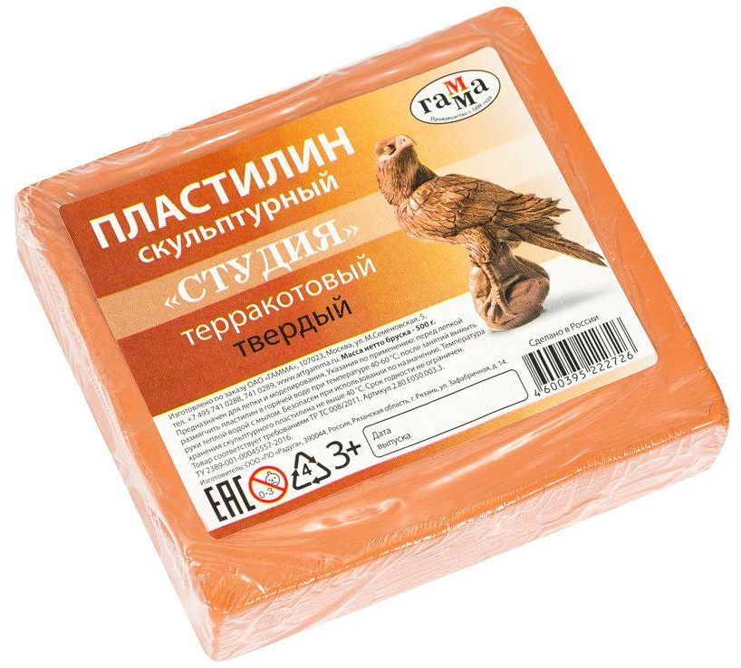 GAMMA sculptural plasteline is placed in a vacuum-sealed pack. The block's weight is 500g. The hard sculptural plasteline from the GAMMA "Studio" series is suitable for professional sculptures and models. It can be used as a molding mass for plaster elements. The material has an optimal ratio of softness and hardness for sculptors' work, good plasticity, and natural colors. The shelf life of the plasteline is unlimited.
